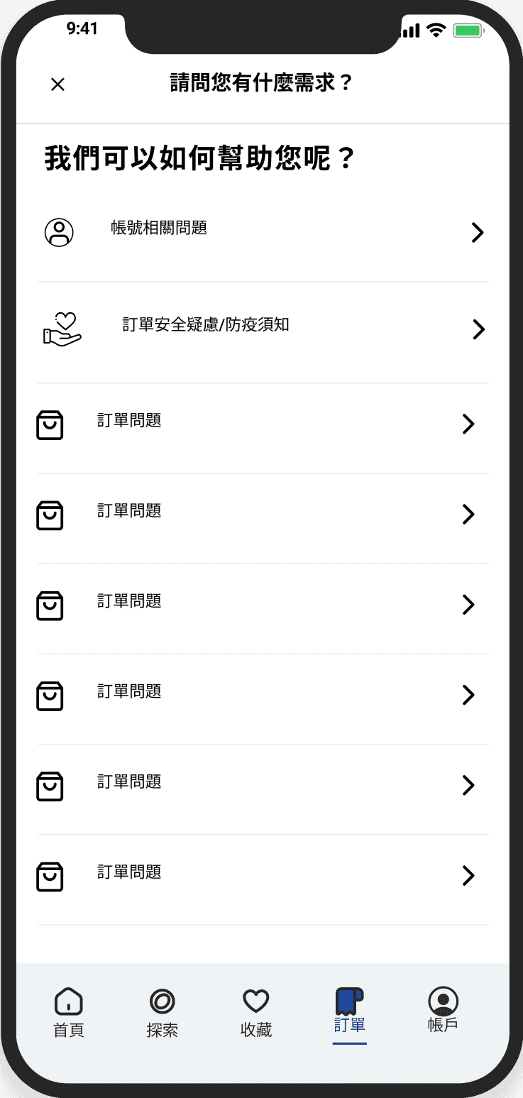 取消訂單是常見問題,在導覽列增加訂單按鈕,可以更快速連結至訂單相關頁面。