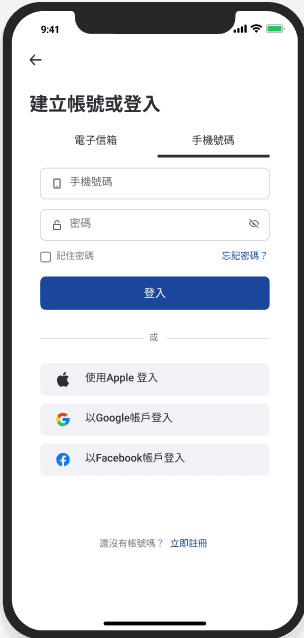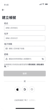 多種註冊方式提高便利性,增加使用者註冊帳號的意願。