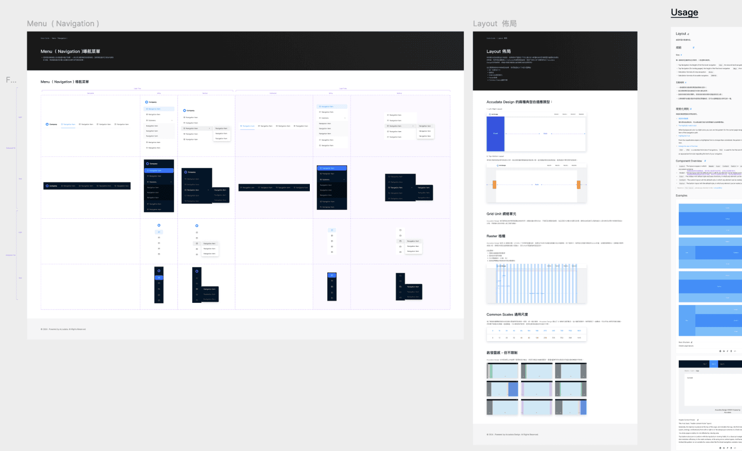 在元件設計部分,系統涵蓋了按鈕、表單、表格、選單、側邊欄、分頁等常見模組,並延伸至 Layout、Grid、Divider、Breadcrumb、Autocomplete 等結構與導覽元素。這些規範全數整合至 Figma,成為可重複利用的設計資源,並與前端的 Ant Design 元件對應,讓交付流程更為順暢。