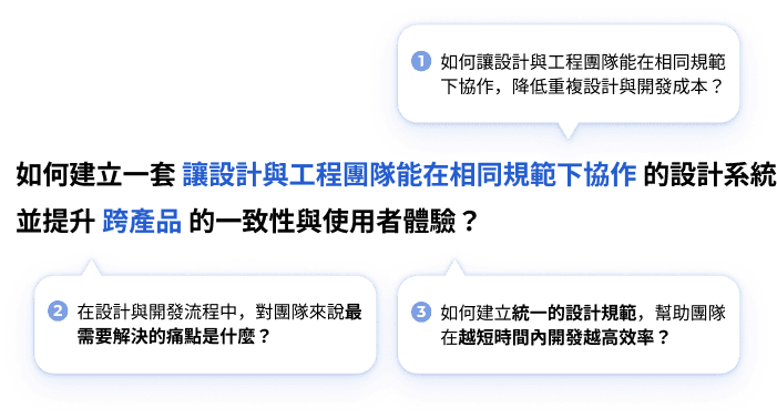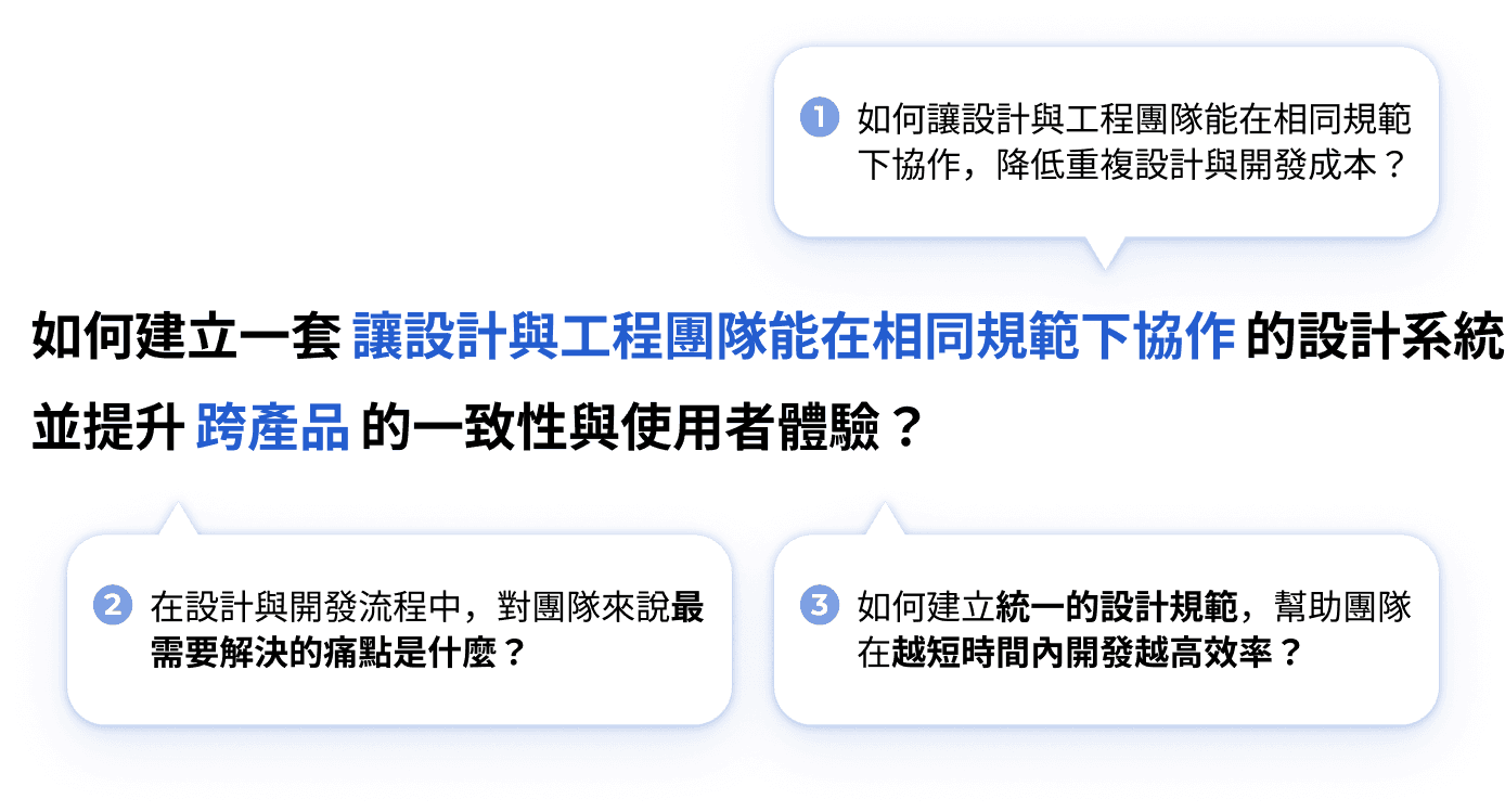 這些問題在長期累積下,逐漸演變成組織層級的挑戰。公司一直缺乏一套統一的設計系統,使得設計與開發間的協作存在諸多困難。相同元件在不同專案中往往被拆分為獨立的子元件,後期維護與版本管理的難度因此大幅增加,也讓產品在一致性與效率上都面臨瓶頸。