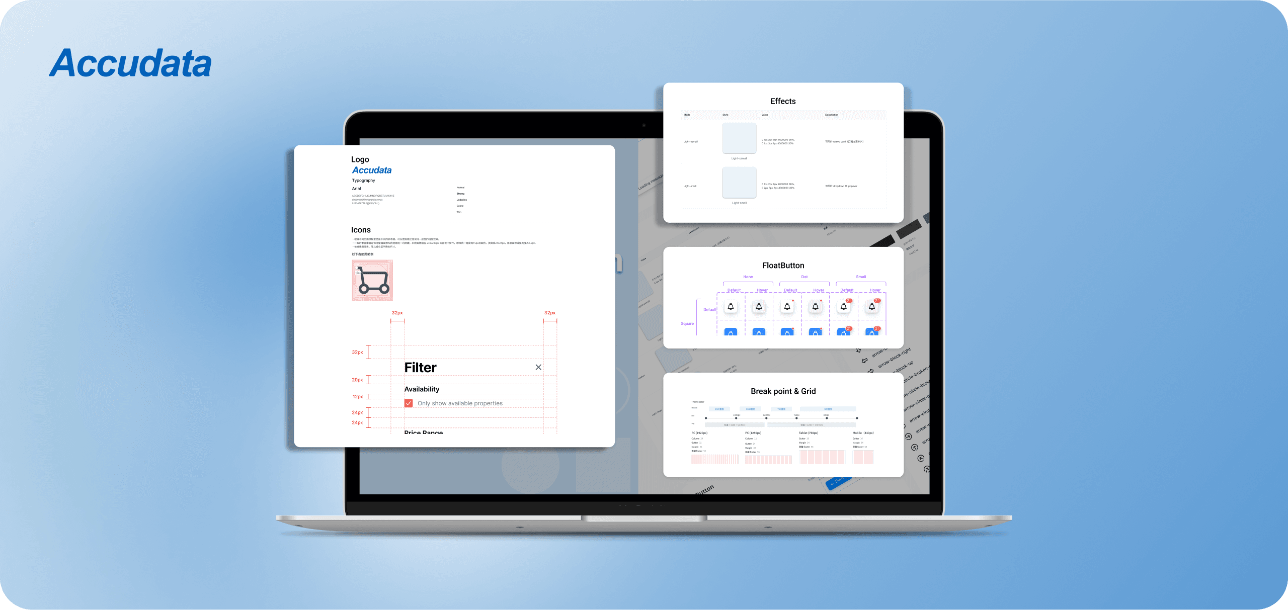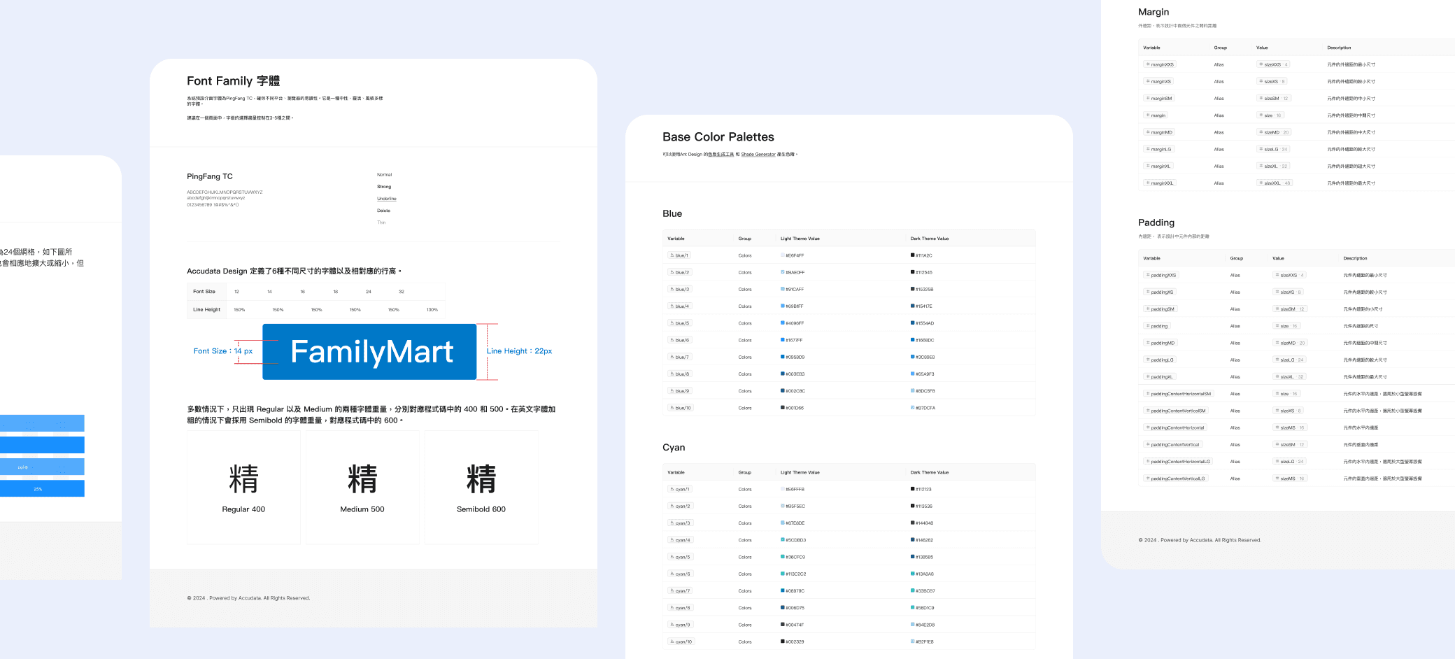 Accudata同時維運多個應用程式、企業網站與核心系統,但由於缺乏統一的設計規範,各產品的字級、icon、間距與元件樣式各自為政,不僅導致視覺風格不一致,也造成設計與開發的重複投入。前端團隊普遍以 Ant Design 作為基礎,但設計端並未建立對應規範,因而在交付與實作之間產生落差,增加了溝通與修改的成本。