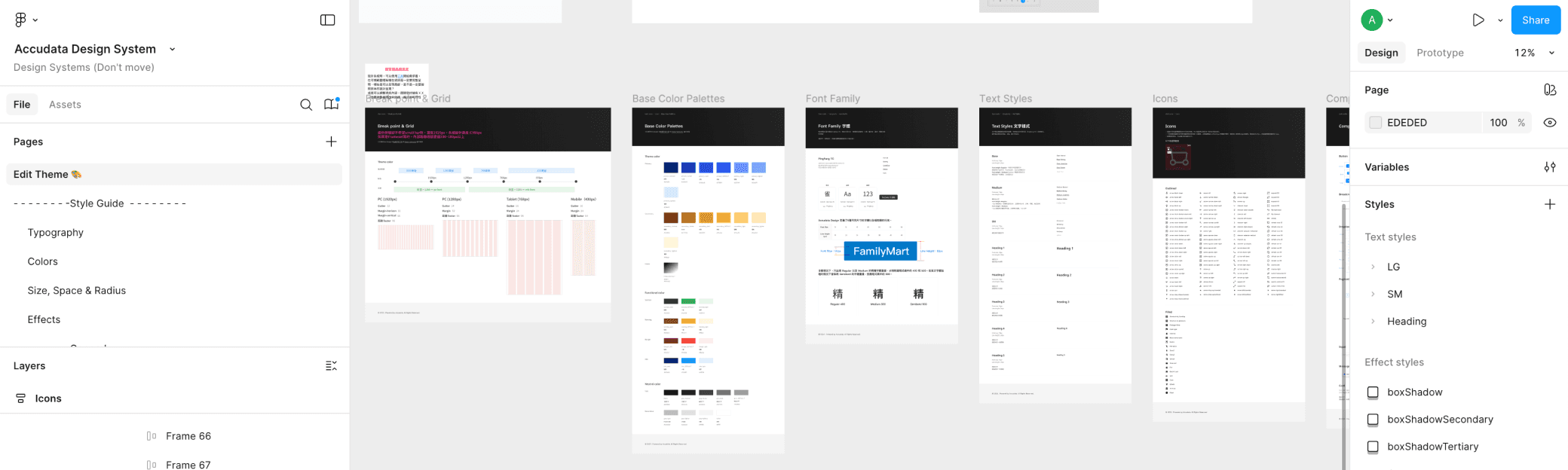 建立一套公司共用設計系統,整合字級、icon、間距與元件,並與前端工程師使用的 Ant Design 對應,提升設計一致性與開發效率。